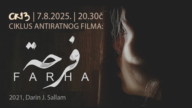 Omladinski centar CK13 vas poziva na projekciju filma “Farha” (Darin J. Sallam, 2021) koji se prikazauje u okviru Ciklusa antiratnog filma u četvrtak, 7. avgusta s početkom u 20.30č.