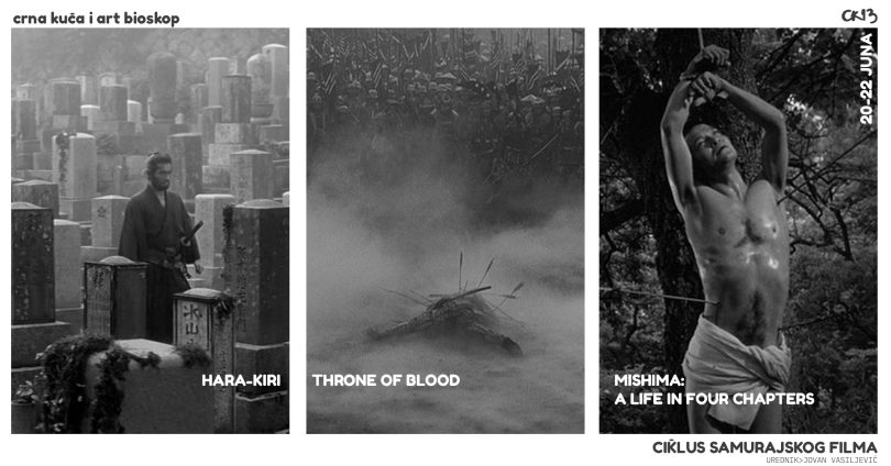 Art bioskop CK13 vas poziva na Ciklus samurajskog filma koji će se održati od utorka, 20. juna do četvrtka 22. juna u Omladinskom centru CK13. Tokom ciklusa prikazaće se tri filma koja pripadaju žanru samurajskog filma.