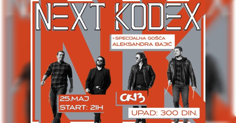 Next Kodex, hard rok bend iz Novog Sada, u prvoj aktivnoj fazi od 2011. do 2017. odsvirao je preko 100 koncerata širom Srbije, osvojio nekoliko nagrada na većim i manjim festivalima, te su i izdali 3 nezavisna singla. Braća Martić su ponovo aktivirala bend 2022. udruživši snage sa Krivim na ritam gitari i Saletom za bubnjevima. Nastupe su proširili i akustičarskom postavkom, što se da za čuti na njihovom albumu, jer osnovni hard rok zvuk su dopunili i drugim stilovima, tako se odvajajući od uobičajenog klasifikovanja. “Vol. 1” su objavili 25. aprila koji sadrži 8 pesama, među kojima su i 2 Hita dana sa Dvestadvojke i Undergrand radija. Kodexi obećavaju odličnu svirku 25. maja u CK13, a i nagoveštaju rad na drugom albumu, za koji su sve pesme iskomponovane.