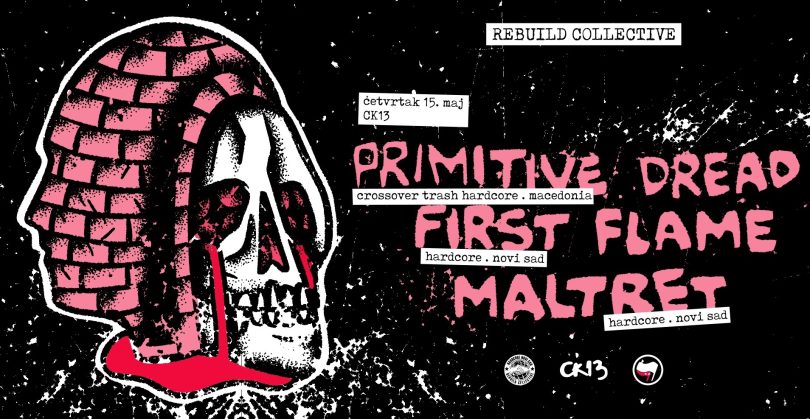 Rebuild show: PRIMITIVE DREAD | FIRST FLAME | MALTRET | 15. 05. 2025. 15/05/202520:00 Muzički događaj SLOBODA DOLAZI!!! Č E T R T A K 15. M A J 2025. PRIMITIVE DREAD | crossover trash hardcore, FYR Macedonia https://primitivedread.bandcamp.com/track/doomed FIRST FLAME | hardcore , Novi Sad https://firstflame.bandcamp.com MALTRET | hardcore, Novi Sad UPAD| TICKETS800 RSD | 18+FREE | <18 FacebookTwitterPinterestLinkedInEmailWhatsApp