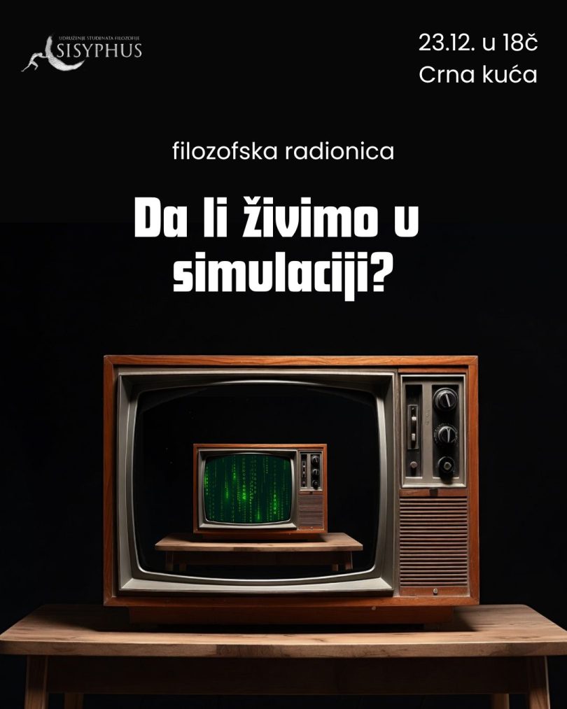 Udruženje studenata filozofije Filozofskog Fakulteta u Novom Sadu Sisyphus vas poziva na filozofsku diskusiju “Da li živimo u simulaciji?”